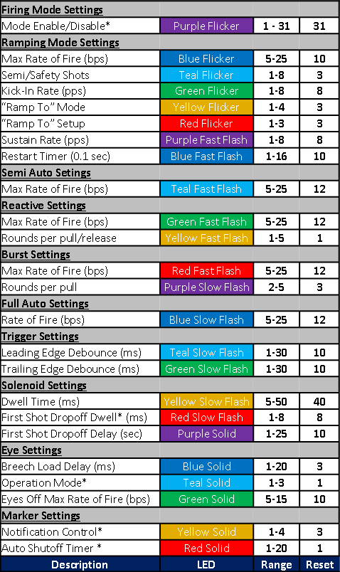 Open this image for a quick reference to all the programmable settings and ranges
